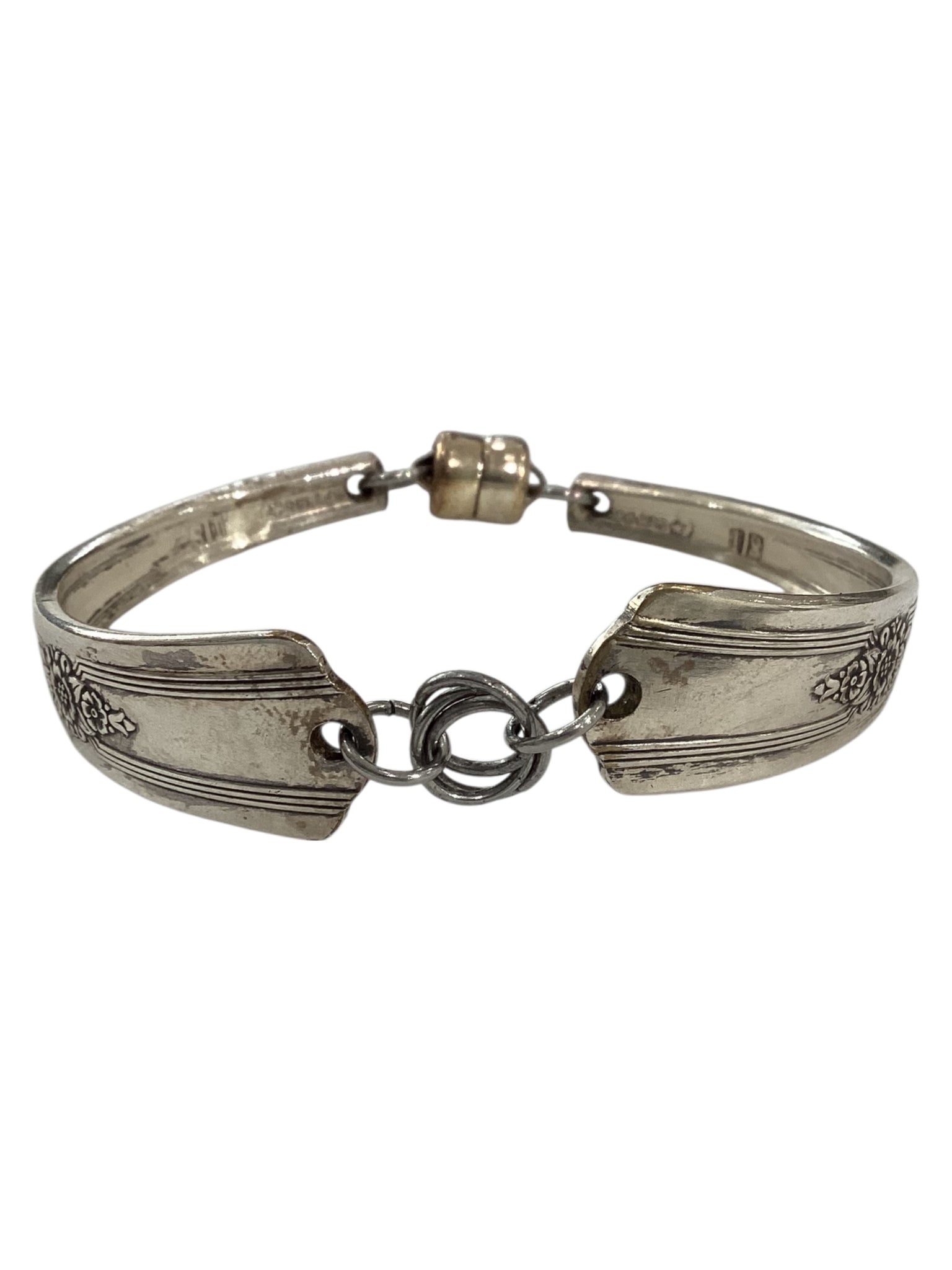 Handcrafted Silver Plate Bracelet using highly detailed Vintage Flatware with magnetic clasp.